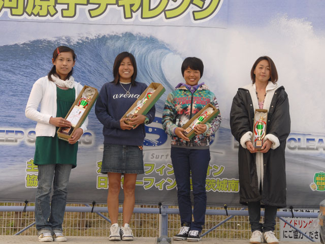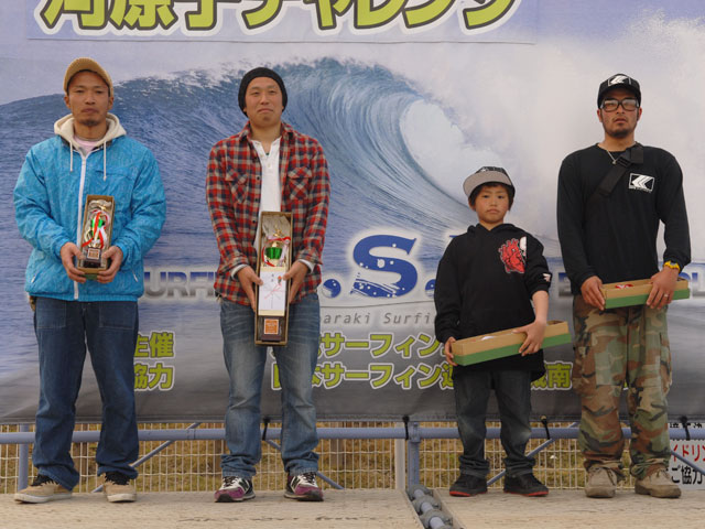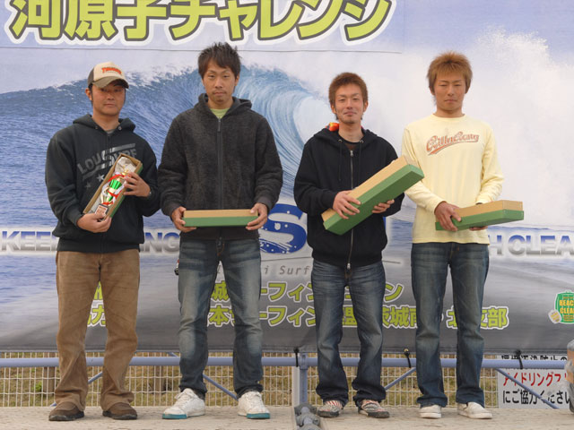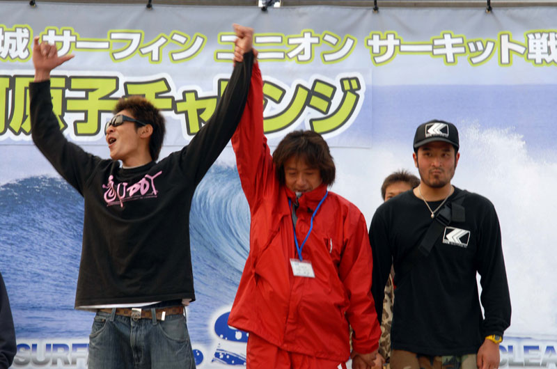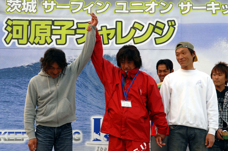 4月27日、ISUのアマチュアサーキットが開幕した。会場となった日立・河原子北浜では、膝から腹位の波のサイズのスモールウェーブにも係らず、熱い戦いが繰りひろげられた。風のコンディションは、ほとんど無風に近い状態を保ち波のフェースも安定した一日だった。チャレンジクラスは、小関健太、ロングボードウーメンは佐野春美が勝利を飾った。オープンクラスは、斉藤武史が大森南海也を抑え嬉しい勝利を手中にした。ロングボードメンは、終始、安定したライディングの栗原卓義に勝利の女神が微笑んだ。2位の梅島修司には、次を期待したい。スペシャルクラスは、見ごたえのある熱戦が展開される中、沼田将人が制した。2位は杉山洋、3位は鈴木智喜、4位には大森海夏人と続いた。5位はベテランの青木保尚と若手の大江良太。注目の太田友貴は、不運も重なり不完全燃焼で9位となった。他に印象に残った選手としては、森本麻夜が挙げられる。ロングボードウーメンとチャレンジクラスにの2クラスに参戦し、それぞれ4位と7位という結果を残したことは、賞賛に値するだろう。また、一年間のブランクを乗り越え、今大会に優勝した沼田将人には、心から拍手を送りたい。最後に、大会運営に携わった役員の皆様に、大いに感謝したい。 (Reported it Masaaki Ishige)