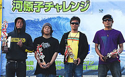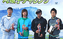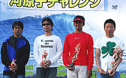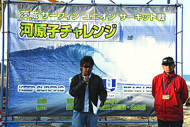 5月16日(日)、今年のISUサーキット初戦、河原子チャレンジが日立市河原子北浜で行なわれた。晴れたり曇ったりしているが爽やかな天気。風は緩い東からのオンショア。波のサイズは、アベレージが腰、セットで肩位。小さいがコンテストで勝敗を決めるには十分な波だ。全クラスとも随所に、パワーとテクニックのあるライディングが披露されていた。見ていて、昨年に比べレベルアップを感じさせる内容だった。大会は、関係者の熟練した運営でスムースに進行して行った波のコンディションは、終始安定した中、大会は終了した。今年からポイントランキング制が無くなってしまったロングウーメンは、塚原みずきさんが接戦の中、新女王となった。また、ロングボードメンクラスも接戦で、これを制したのが、安定感のある岡部祐司だった。チャレンジクラスの杉山武尊、オープンクラスの米川宏晃らがファイナルで、目立ったライディングを見せ優勝した。 スペシャルクラスは、昨年から好調を維持し、今大会でも切れのあるサーフィングを披露した大江良太が優勝した。だだ、1位から4位までスコアーは僅少差で、井上達貴、鈴木智善、沼田将人と続いた。天候も波のコンディションも上々の中、大会は順調に進行し、とても良い大会だった印象が残った。 さて、次の大会は6月27日、茨城県知事杯。もうすぐだね。がんばってください。また、その時、お会いしましょう。(Reported it Masaaki Ishige)