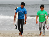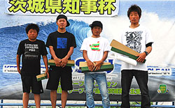 7月4日(日)、東海村豊岡海岸で2010年ISUサーキットの第2戦、茨城県知事杯が開催された。6月27日(日)に予定されていたこの大会は、ライディング不可能なほどの波の状態により、この日に延期されていた。大会は、濃い霧に包まれるという中でスタートしたが、序々に霧も晴れてゆき、終日、曇りという天候の中、予定通り終了することができた。また、波のサイズは腰から胸、風は左サイドからの極弱いオンショアで大会の進行には支障を来たすことはなかった。大会を通して、厚く入ってくるスウェルをテークオフし、急激に掘れるインサイドを、どう処理するかによって勝敗が分かれるという試合内容であった。その中で、若手の活躍が著しく目に付いた。特に、太田弥生、石黒伸、大森南海也、大森海夏人はスピードとテクニックを見せ付けギャラリーを大いに沸かせた。また、オープンクラスの宮本睦もまだ荒削りであるが、今後期待できる一人に違いない。この大会では、アピールできなかったが、この他にも数名の期待できる若手がいることにも注目したい。将来、これらの選手たちが立派に成長し、世界と互角に戦えることを心から期待したい。さて、スペシャルクラスは、河原子の鈴木智善が制した。同じ河原子の大江良太と共にISUサーキットでは最も安定した力を持っていることを自力で証明した。オープンクラスは関俊哉、チャレンジクラスは林良澄竜、ロングボードメンクラスは丸山浩紀、ショートボードウーメンクラスは福見久美子が其々優勝した。ISUサーキットは次の大会から後半戦に入る。第3戦は、9月4日、5日に行なわれる大洗カップ。まだまだ、誰がグランドチャンピオンの栄冠を手にするか分らない。コンテスタントにとって、次の一戦は重要な大会になるはずだ。熱い戦いが予想される楽しみな大会だ。(Reported it Masaaki Ishige)