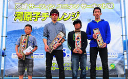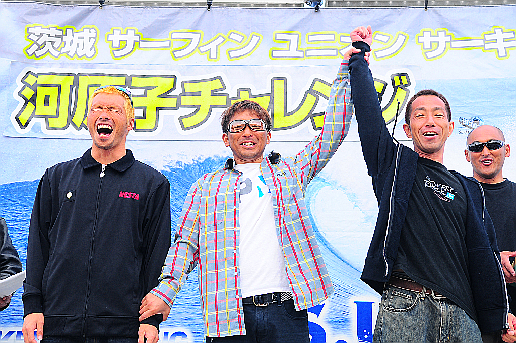 ロングボードウーメンクラスは、波を捉えるのに各選手、四苦八苦の状態だったが、篠塚沙絵子がよい波を捉え優勝した。ロングボードメンクラスは、今年度からこのクラスに参戦した小野440に注目が集まったが、常連のファイナリスト皆川次郎がその小野を封じこめ勝利を手中にした。小野は2位となったが、このクラスに小野が参戦することは有意義で、茨城ロングボード界のレベルアップにつながるべく、好材料となりうるのは言うまでも無い。チャレンジクラスは、小野瀬曉が昨年度より、技術的にさらなる成長を遂げ、予選から決勝まで危なげなく戦い貫き勝利を掴み取った。2位の宮本竜訓、3位の山口孝典も善戦した。エントリーの最も多い激戦のオープンクラスでは、澤村康生がひとつ頭を抜け出したライディングで他を圧倒し優勝した。スピードのあるラインドライブから繰り出された小気味のよいリッピングやカットバックは他の選手に比べ強く印象に残った。このクラス前年度チャンピオンの林良澄竜は2位に甘んじてしまったが、次の大会は万全を期し優勝を目指して欲しい。3位となった田中正輝も将来性を感じさせるサーフィンで健闘し、ランキング上位に着けて、さい先のよいスタートを切り、今後が楽しみだ。スペシャルクラスでは、全日本チャンピオンの大江良太が、さすがに強さを発揮した。予選から決勝まで、持ち前のテクニックとパワーを持続しながら危なげなく勝ち進み、快勝と言ってよいだろう。2位には熟練したテクニックを随所に披露し、なおかつ安定度で群を抜いていた寺門剛が当然のごとく入った。3位には、ソリッドな波をテークオフをしていたビッグウエーブライダーの太田友貴が僅差で続いた。4位の井上コウヤだが、初の決勝進出で萎縮してしまったのか、準決勝までのスムースなラィデングが決勝では影をひそめてしまっていたことが悔やまれた。いずれにせよ、スペシャルクラスの決勝は、4名のレベルの高い戦いとなった。
