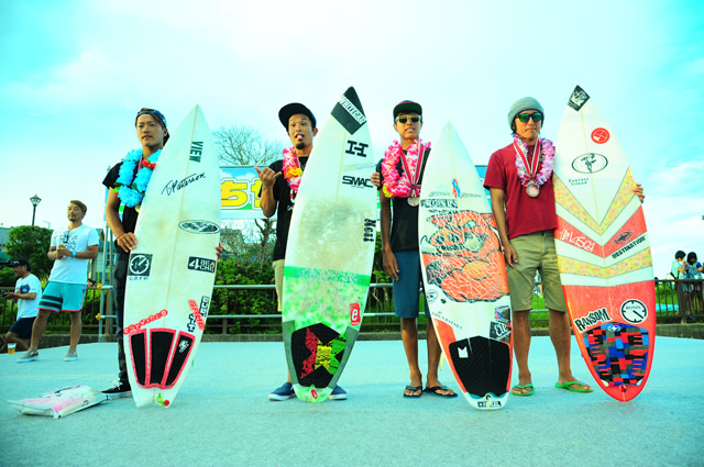 終始、完全にヒートを支配し続けた野田が、誰もが認める納得の優勝を果たした。野田はスピードに乗せた走りから、パワフルで大きなサーフィンを展開した。また、ボードコントロールの巧みさも光っていた。この大会で野田は著しい進化を見せつけた。2位の杉山もトリッキーなターン、鋭い角度のリッピングを随所に披露してテクニシャンである自分の存在を示した。3位になった川俣だが、オーソドックスでスタイリッシュな姿勢から繰り出される技は切れ味、また角度も鋭く個人的だが好印象な記憶が残った。ファイナリストの常連である渡邊は4位となってしまったが、決勝のヒートは少々空回りした感じだったが、予選から決勝までトータル的に見ればスピードに乗せた良いサーフィンだった。大会中、調子を維持する難しさを感じたことだろう。
